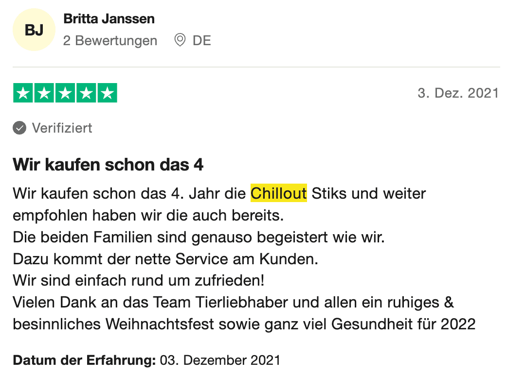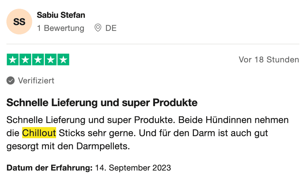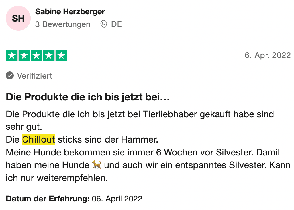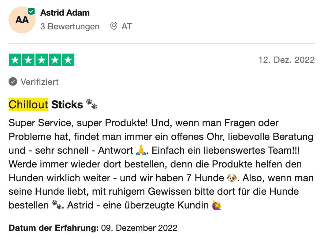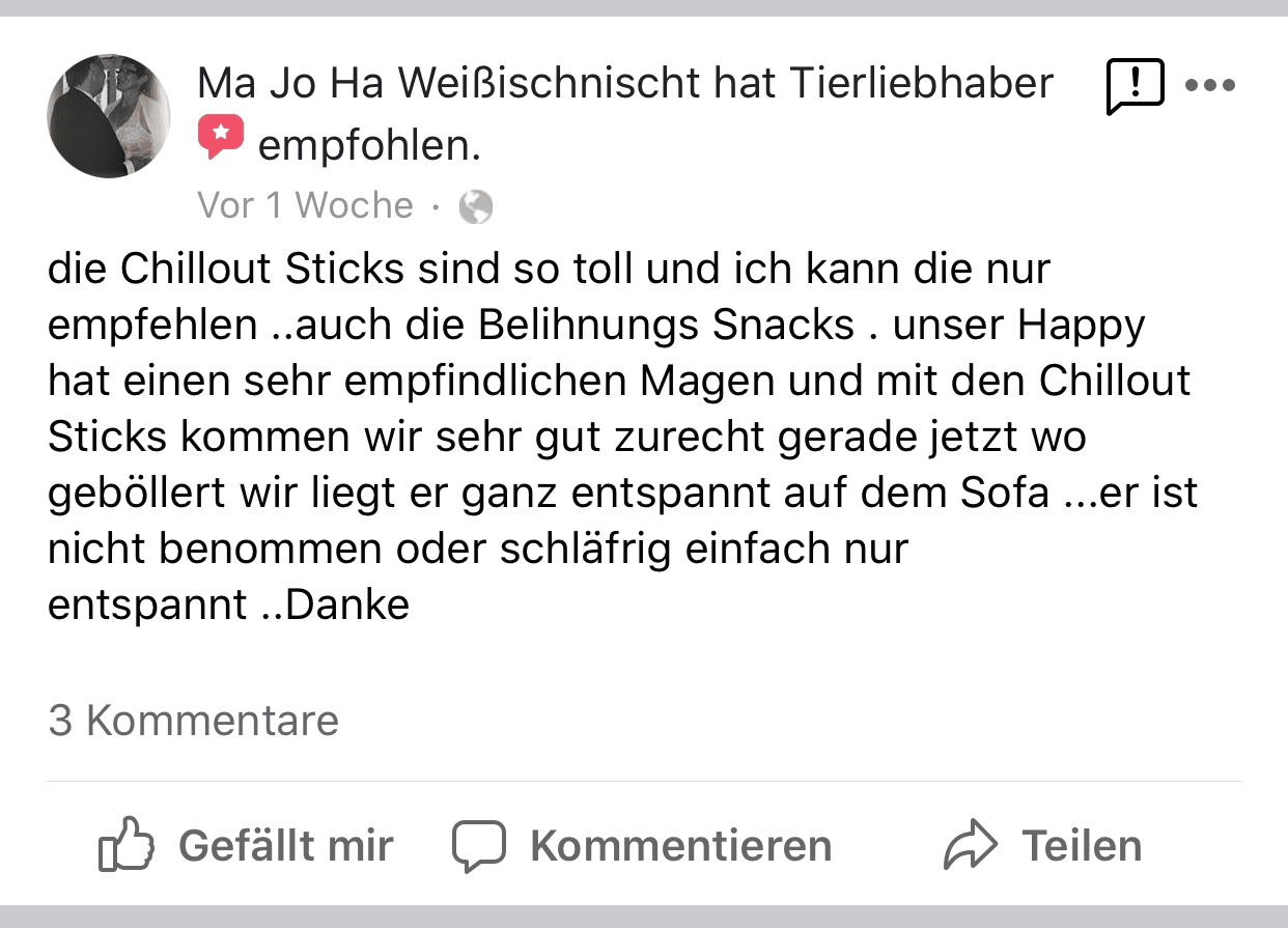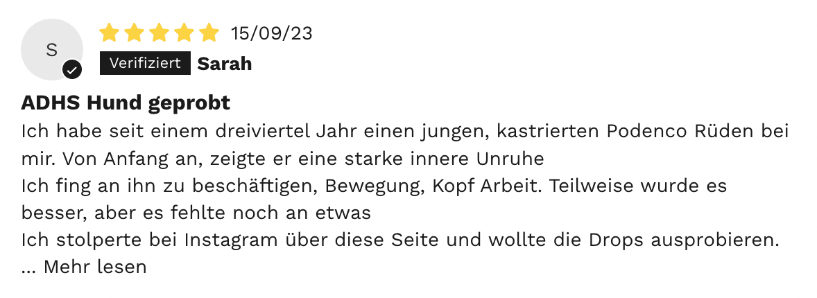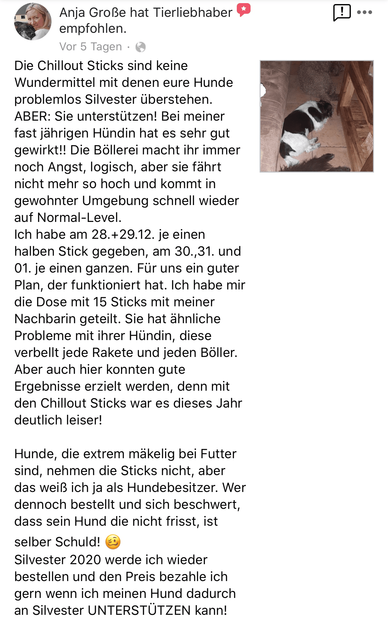 Ähnlichkeiten mit tatsächlichen Personen, Ereignissen oder Ergebnissen sind rein zufällig und nicht beabsichtigt. Die Wirkung der Produkte kann von Hund zu Hund unterschiedlich ausfallen und hängt von verschiedenen Faktoren ab – wie z. B. Gesundheitszustand, Ernährung oder Bewegung. Tierliebhaber macht daher keine Garantie auf bestimmte Resultate und empfiehlt bei gesundheitlichen Problemen stets den Rat eines Tierarztes einzuholen.